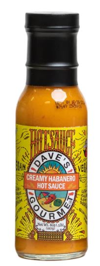 Dave's Gourmet Creamy Habanero Sauce is a smooth and spicy blend of habanero, red jalapeno, and lime juice. Try a spoonful and savor the creamy texture and bright citrus notes that are followed by the lingering zing of spicy habaneros. This sauce is moderately spicy so you don't have to be a hot sauce lover to enjoy it. |Gluten-Free|Vegan||No Preservatives|Bottled in the USA|