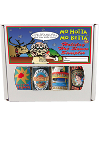 Sampler contains Dave's Insanity, Mo Hotta's Jalapeno, Scorned Woman & Trinidad .